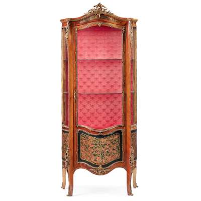 LOUIS XV STYLE KINGWOOD, FAUX TORTOISESHELL AND BRASS INLAID VITRINE