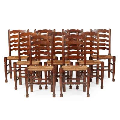 SET OF TEN LANCASHIRE LADDERBACK CHAIRS