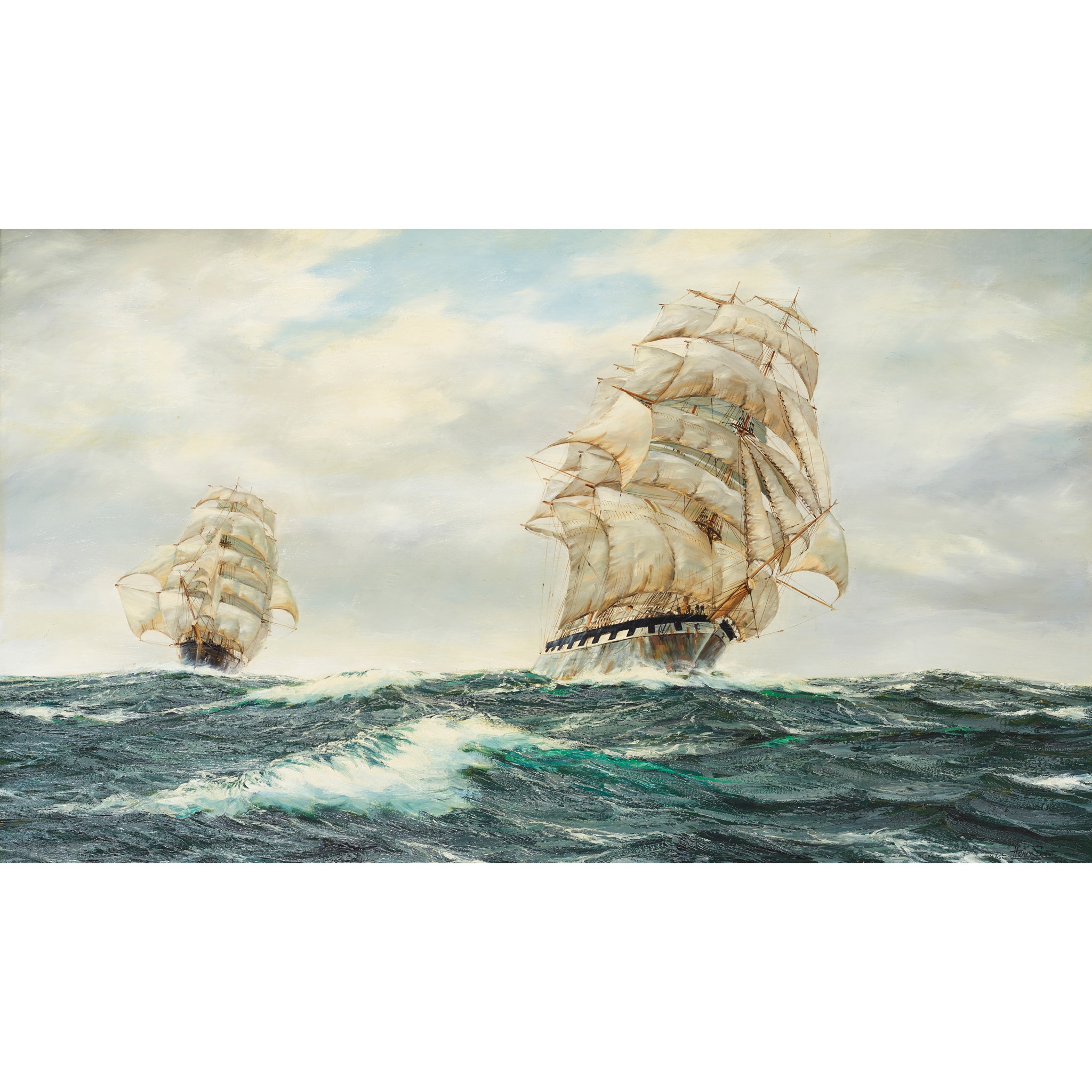 Note: The painting depicts the iron-clad clipper Cape Horn built at Greenock in 1868