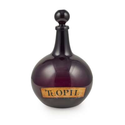 LARGE AMETHYST GLASS PHARMACY OPIUM BOTTLE AND STOPPER