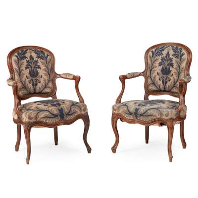 PAIR OF LOUIS XV WALNUT AND NEEDLEWORK FAUTEUILS