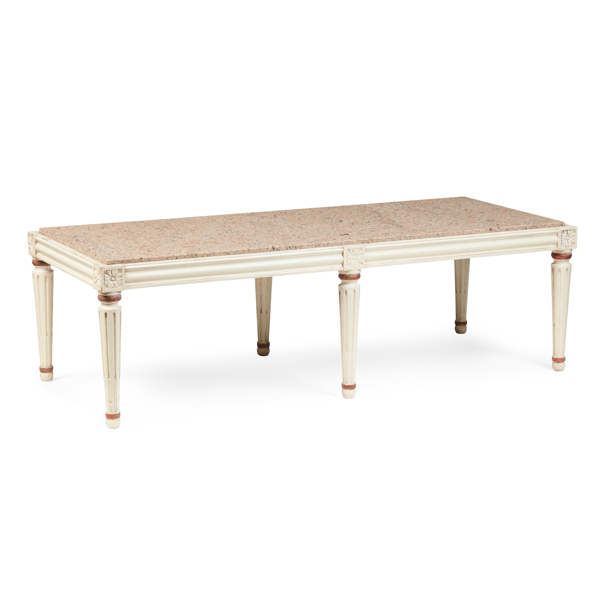 LOUIS XVI STYLE CREAM PAINTED AND MARBLE LOW TABLE