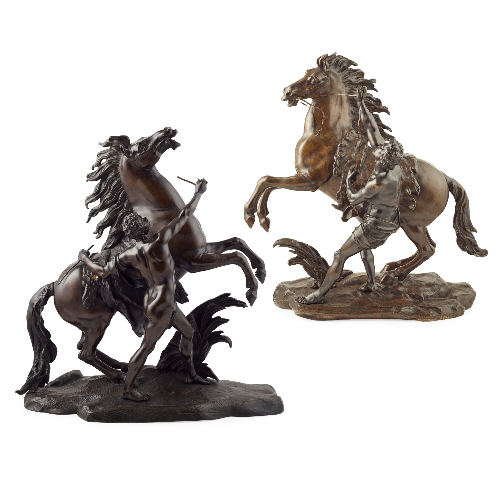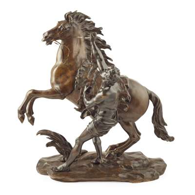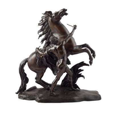 PAIR OF LARGE FRENCH BRONZE MARLY HORSE FIGURES, AFTER COUSTOU