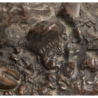 bronze, dark brown patina, on a rectangular naturalistic base signed 'Fratin' and stamped ‘CM’, the edge also stamped ‘V.H.’