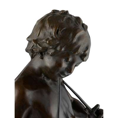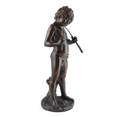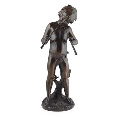 AFTER AUGUSTE MOREAU, BRONZE FIGURE OF A BOY PLAYING PIPES