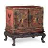 CHINESE RED LACQUER AND GILT CHEST-ON-STAND