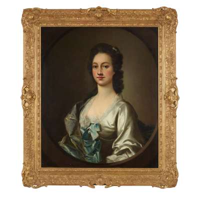 HALF LENGTH PORTRAIT OF A YOUNG LADY IN IVORY DRESS
