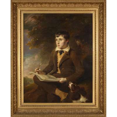 PORTRAIT OF THOMAS MAUDE WITH SKETCHBOOK AND DOG
