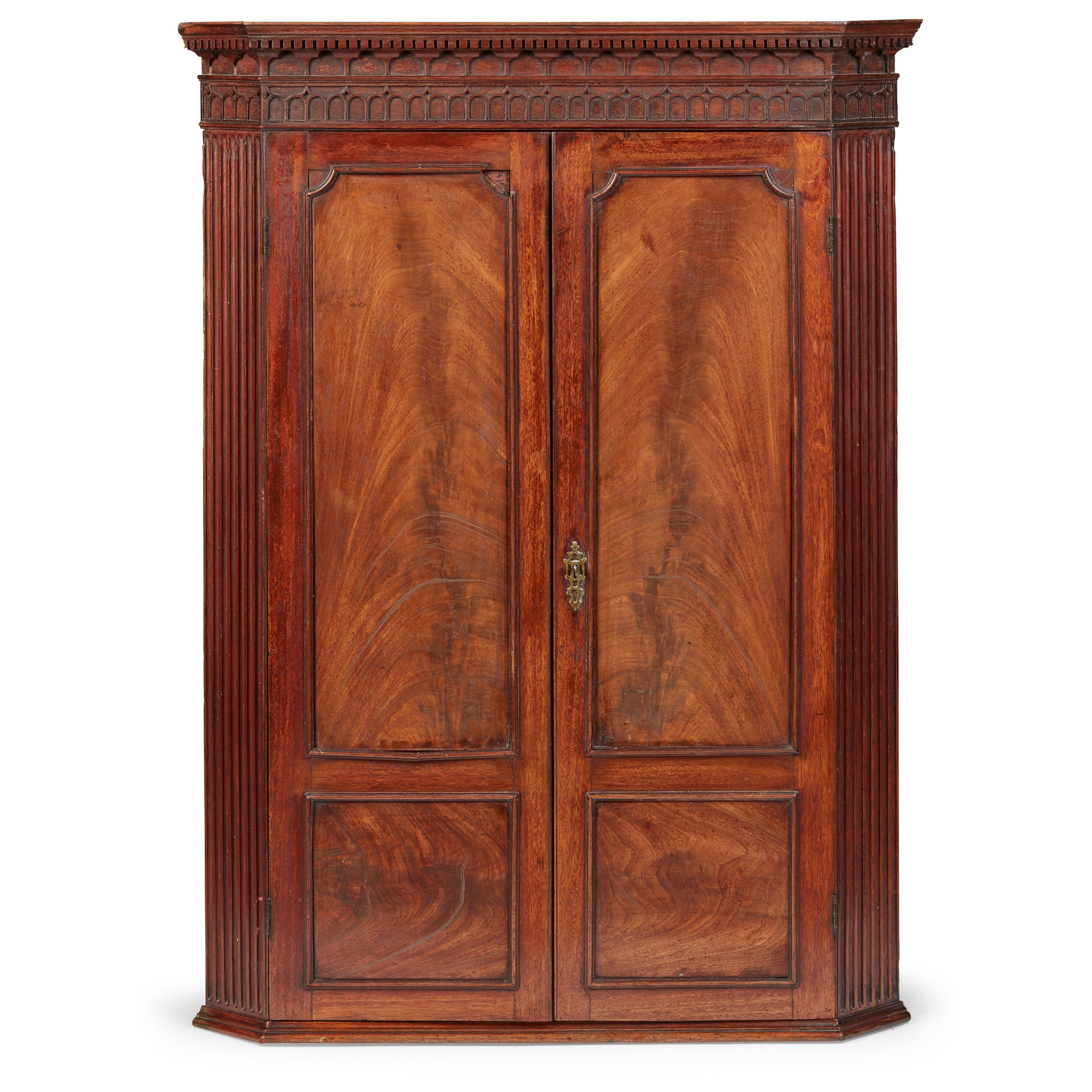 GEORGE III MAHOGANY HANGING CORNER CABINET