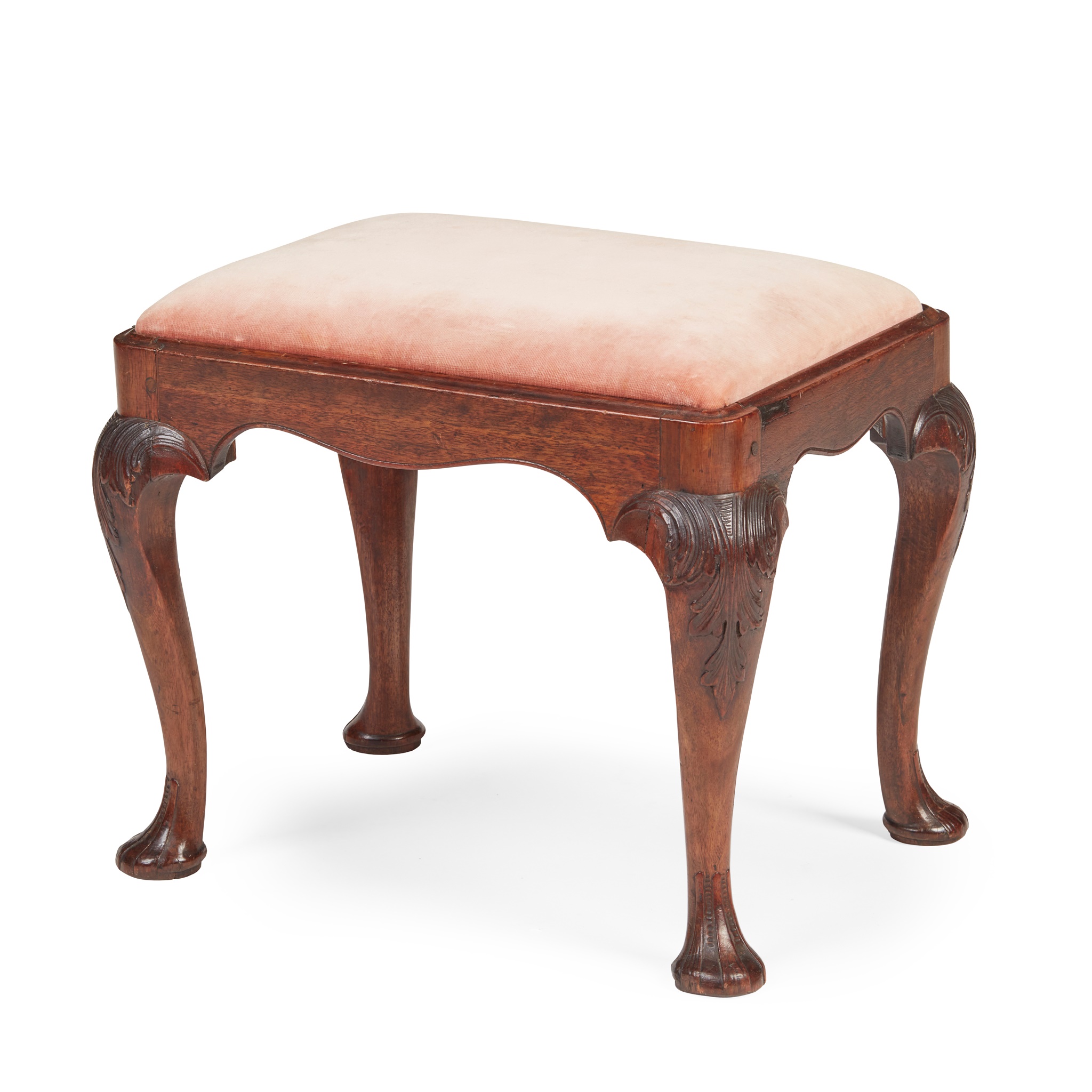 with a drop-in pad above a wavy seat rail raised on shell-carved cabriole legs ending in carved pad feet