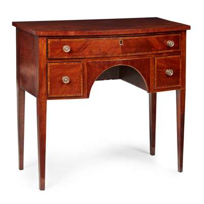 LATE GEORGE III MAHOGANY BOWFRONT DRESSING TABLE