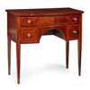 with a long crossbanded frieze drawer and two short drawers flanking an arched apron, raised on square tapered legs