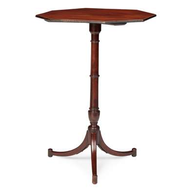 GEORGE III MAHOGANY AND SATINWOOD OCTAGONAL WINE TABLE