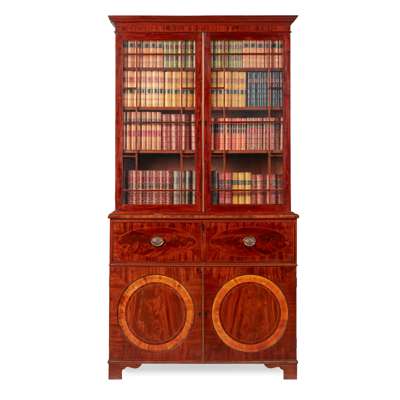 LATE GEORGE III MAHOGANY AND EBONY SECRETAIRE BOOKCASE