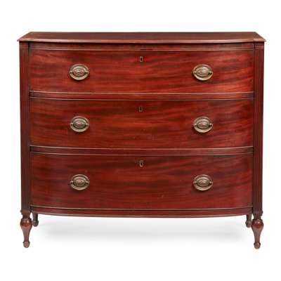 LATE GEORGE III MAHOGANY BOW FRONT CHEST OF DRAWERS, IN THE MANNER OF GILLOWS