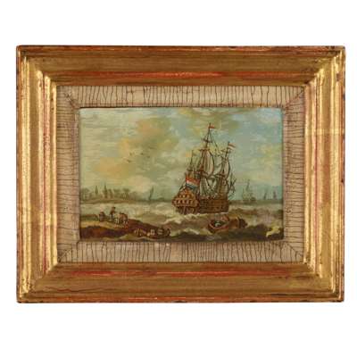 Oil on copper, and a companion, a pair, 'A Dutch Galleon'