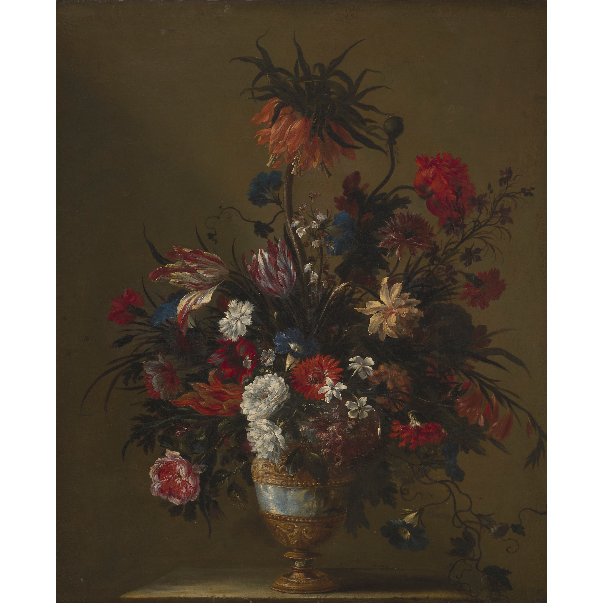 A STILL LIFE OF FLOWERS IN A GILT-MOUNTED MARBLE VASE