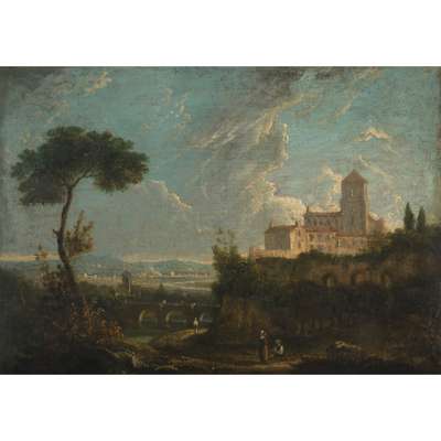 AN ITALIANATE LANDSCAPE WITH MONASTERY AND DISTANT VIADUCT