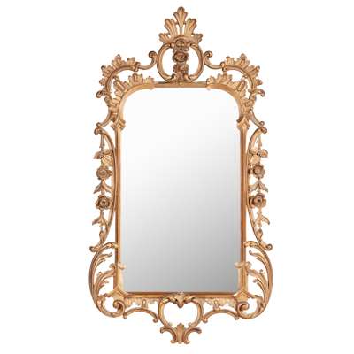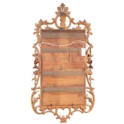 the rounded rectangular plate within a shaped frame with flower trails, acanthus, and C scrolls, surmounted by a pierced shell cresting