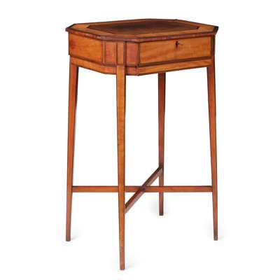 GEORGE III SATINWOOD, MAHOGANY, AND EBONY WORK TABLE