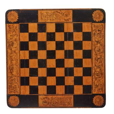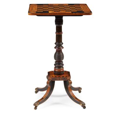 REGENCY SATINWOOD AND PENWORK GAMES TABLE