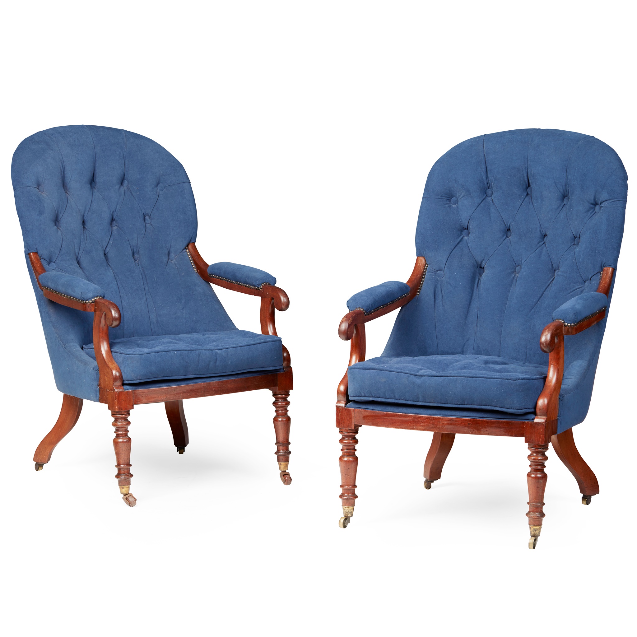 PAIR OF WILLIAM IV MAHOGANY LIBRARY ARMCHAIRS
