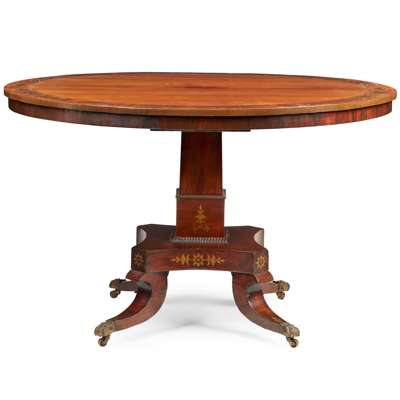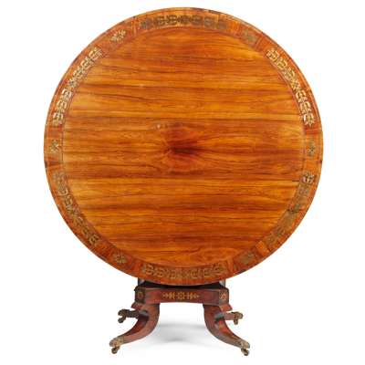 REGENCY ROSEWOOD AND BRASS INLAID BREAKFAST TABLE Y