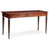 the rounded rectangular top with a moulded edge, with frieze drawers to the short sides and dummy drawers to the front, raised on slender turned and reeded legs