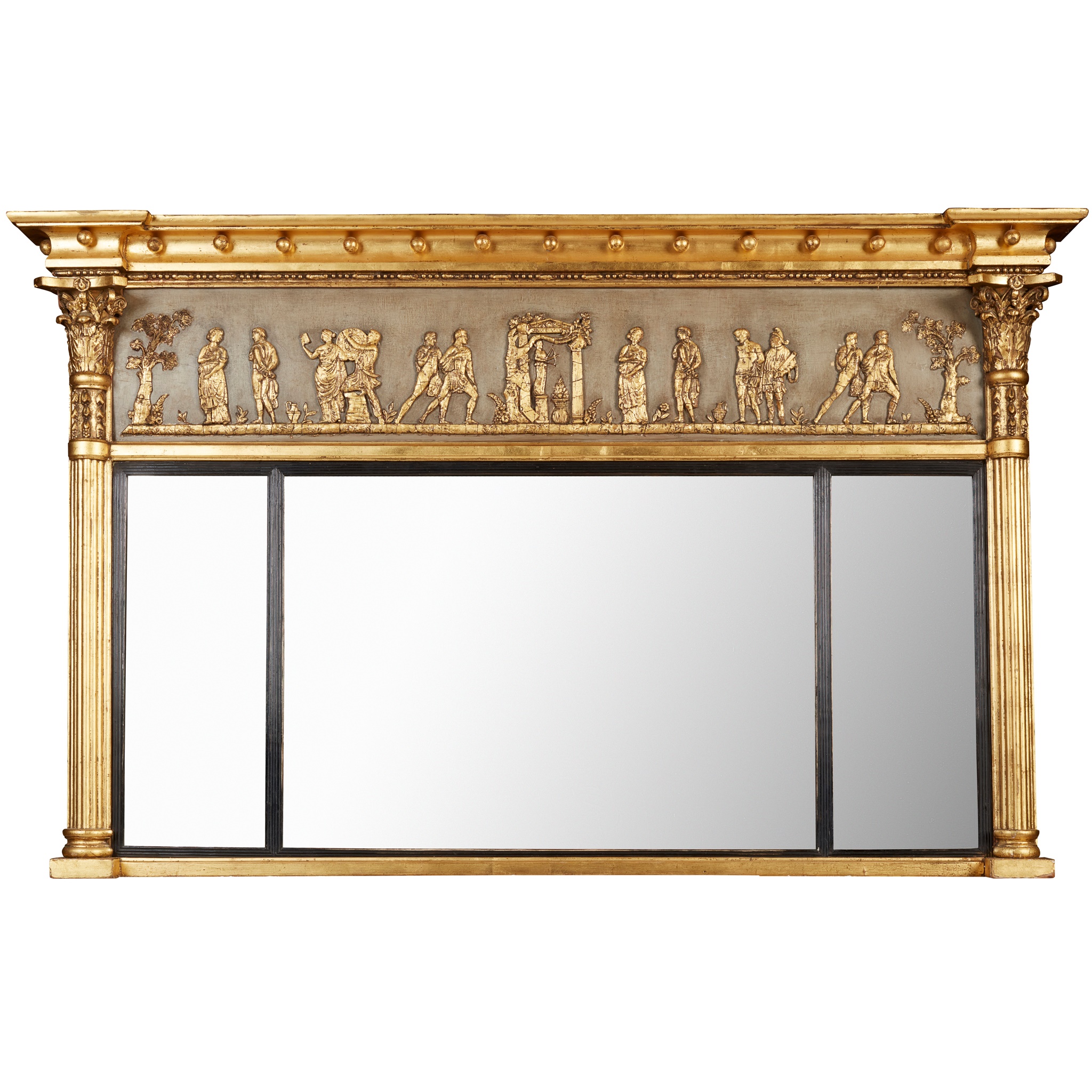 REGENCY GILTWOOD AND GESSO TRIPLE OVERMANTEL MIRROR