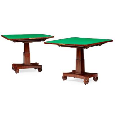 PAIR OF LATE REGENCY MAHOGANY CARD TABLES
