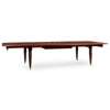 the rounded rectangular top with a moulded edge, raised on turned and reeded tapered leg ending in brass caps and castors, with four leaf inserts