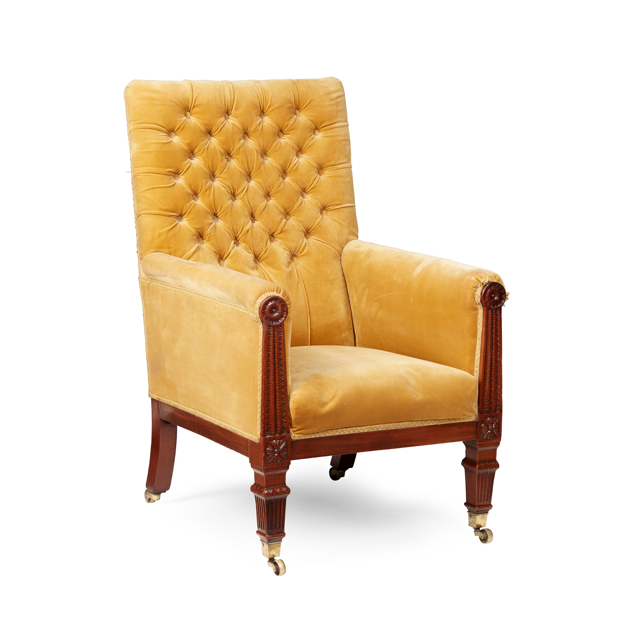 REGENCY MAHOGANY LIBRARY ARMCHAIR