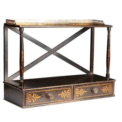 REGENCY EBONISED AND PARCEL-GILT HANGING SHELF