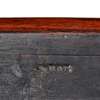 the back rails carved with rocaille and a quatrefoil openings, above padded backs and stuffover seats covered in buttoned upholstered yellow herringbone wool, raised on turned and tapered legs, the seat rails stamped A. RAE