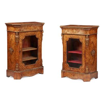 PAIR OF VICTORIAN WALNUT AND MARQUETRY PIER CABINETS