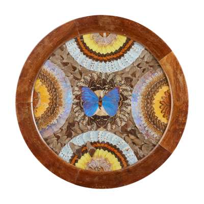 BRAZILIAN MONKEY PUZZLE TREE WOOD, MOTH AND BUTTERFLY WING OCCASIONAL TABLE