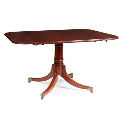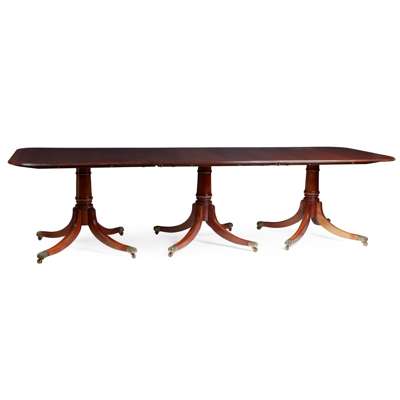 GEORGIAN STYLE THREE PILLAR DINING TABLE, BY HICKS OF DUBLIN