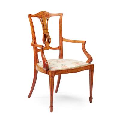 EDWARDIAN YEW AND SATINWOOD ARMCHAIR