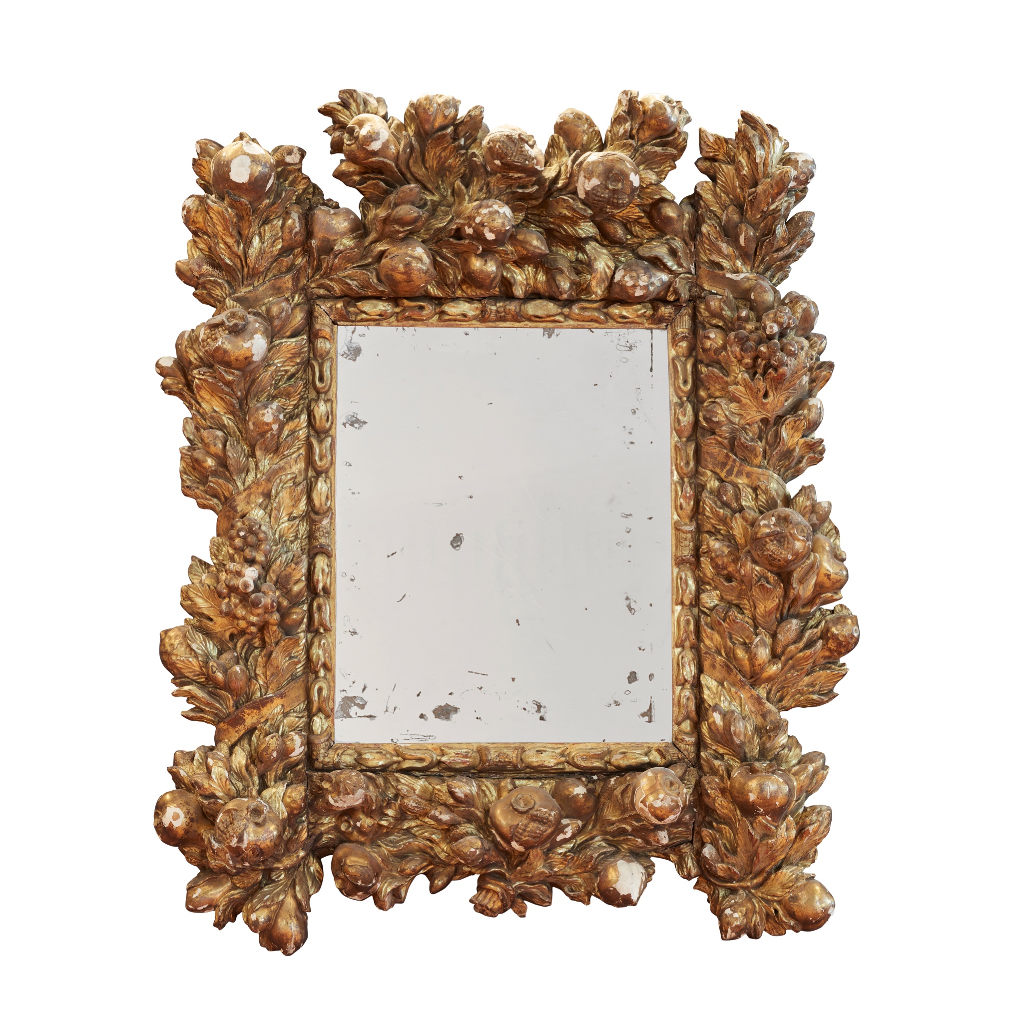 probably Lombardy or the Veneto, the rectangular plate in a wide frame extensively carved with laurel and oak leaves, with pomegranates and other fruit