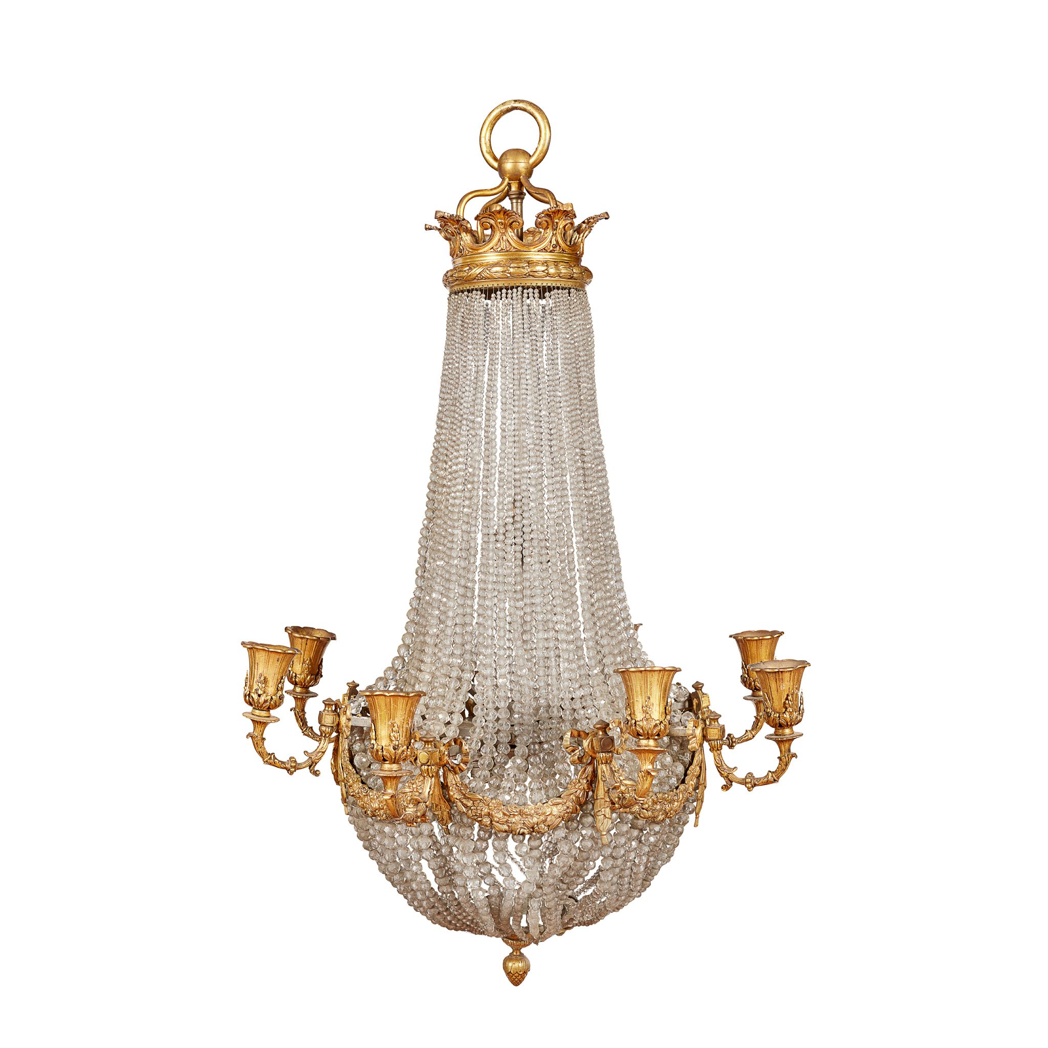 SECOND EMPIRE STYLE GILT BRONZE AND CUT GLASS BASKET CHANDELIER