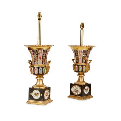 PAIR OF FRENCH PORCELAIN LAMP VASES