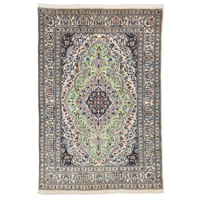 the light green field with ivory and indigo medallion, similar spandrels, within ivory border