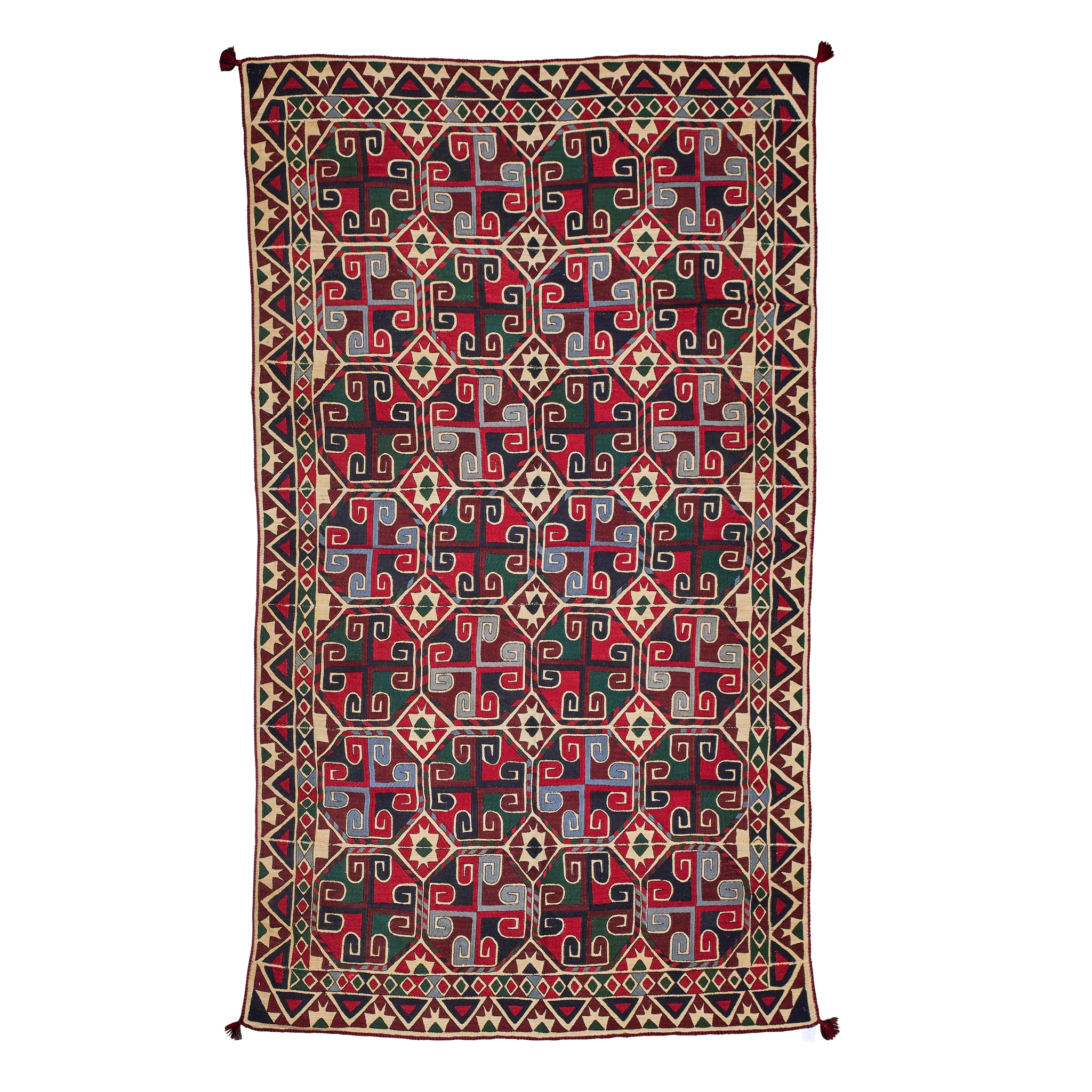 the cream field with allover polychrome octagon lattice pattern, within cream border