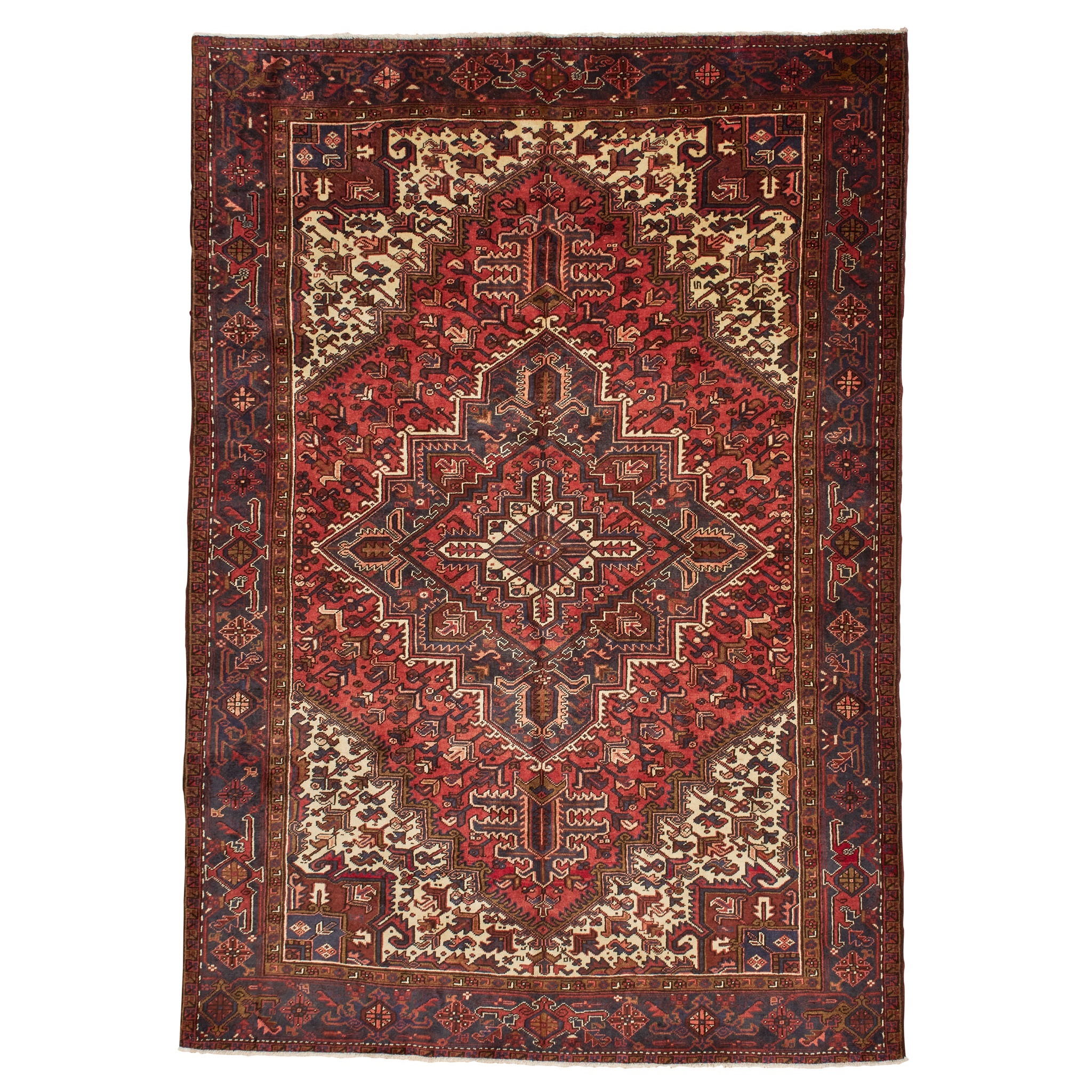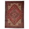 the brownish red field with indigo, red and ivory medallion, ivory, brown and indigo spandrels, within indigo border