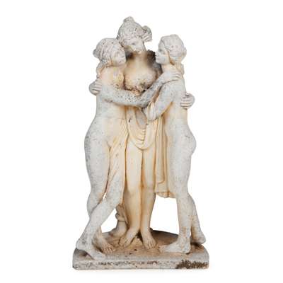 AFTER CANOVA, COMPOSITION STONE FIGURE GROUP OF THE THREE GRACES