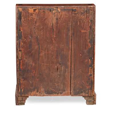 GEORGE I BURR ELM, MAHOGANY, AND OAK BUREAU
