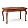 the quarter-veneered top centred by a star motif, above a cavetto moulded frieze, raised on cabriole legs ending in pointed pad feet