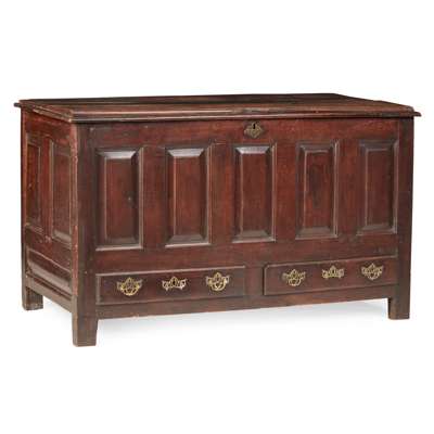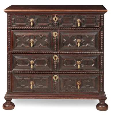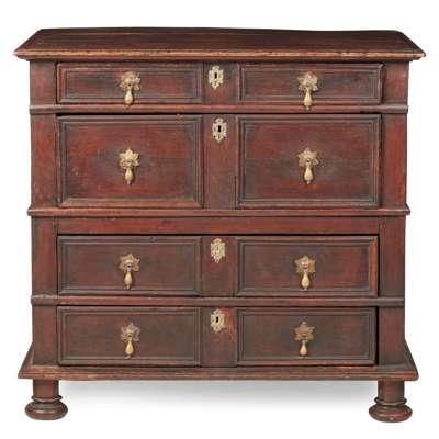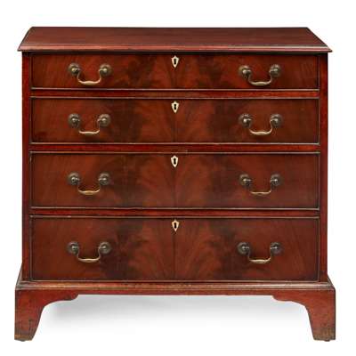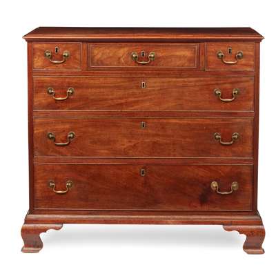 GEORGE II STYLE WALNUT BLOCK FRONT CHEST OF DRAWERS