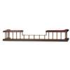 with two L shaped pads covered in oxblood leather, on square brass rails on a stained oak base to simulate rosewood