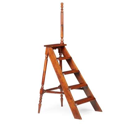 with five treads and a turned vertical hand rail support, raised on turned forelegs joined by peripheral stretchers